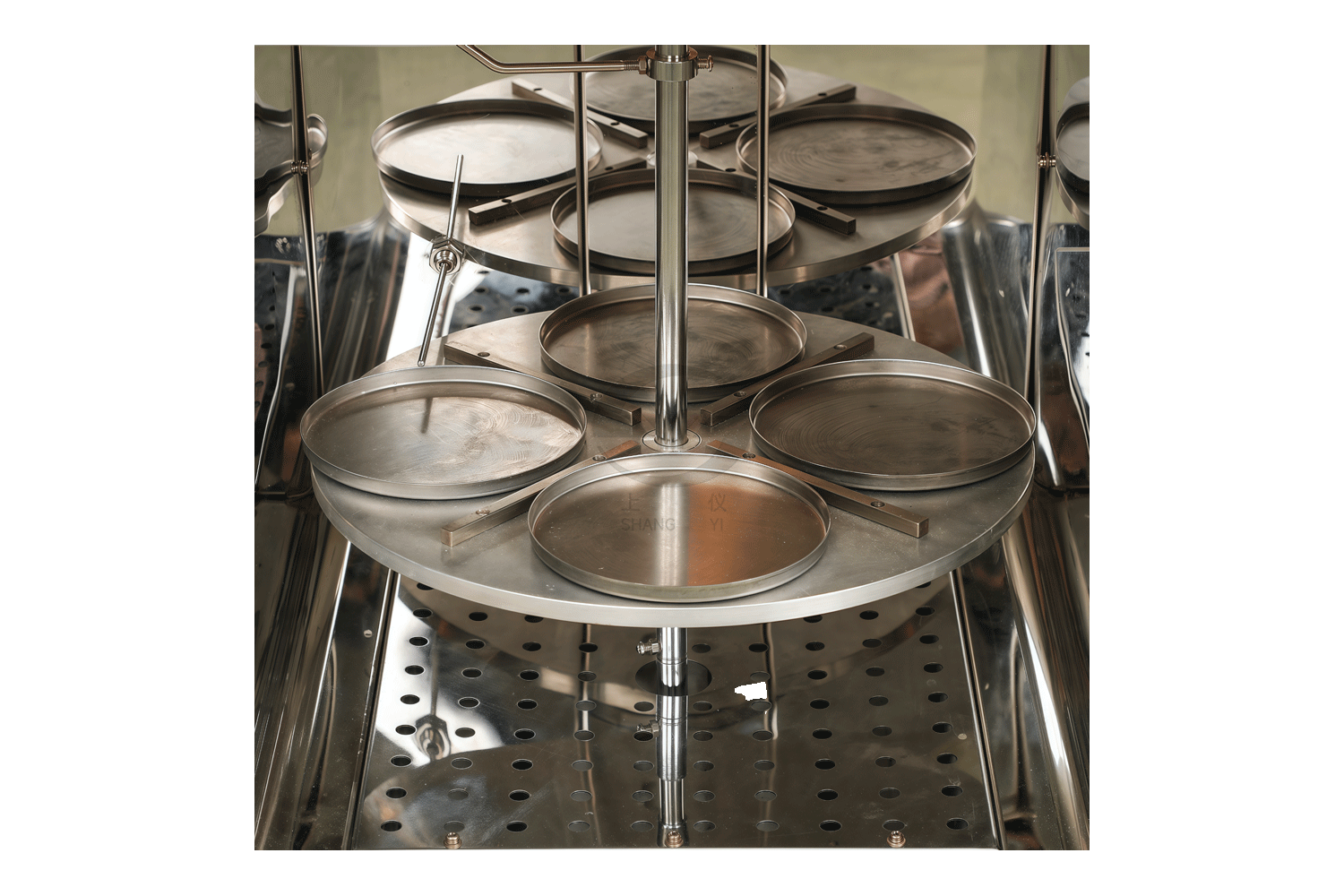 5、工作室中央装有可以放置四只沥青盛样皿的转盘,它由电机带动,以每分钟5.5转的速度转动。
