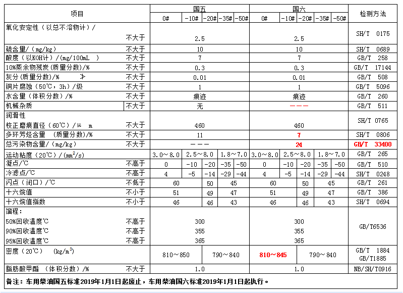 柴油检测指标