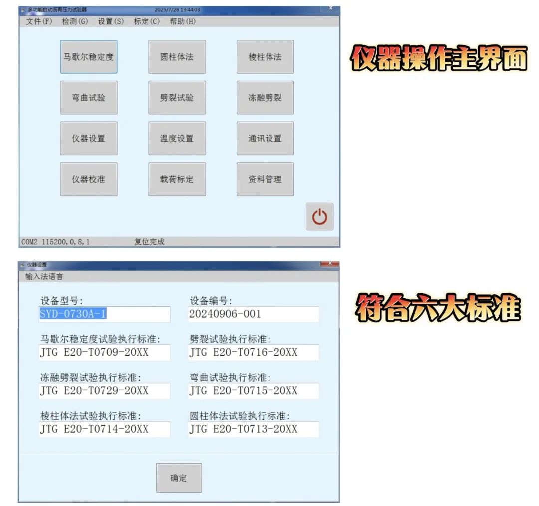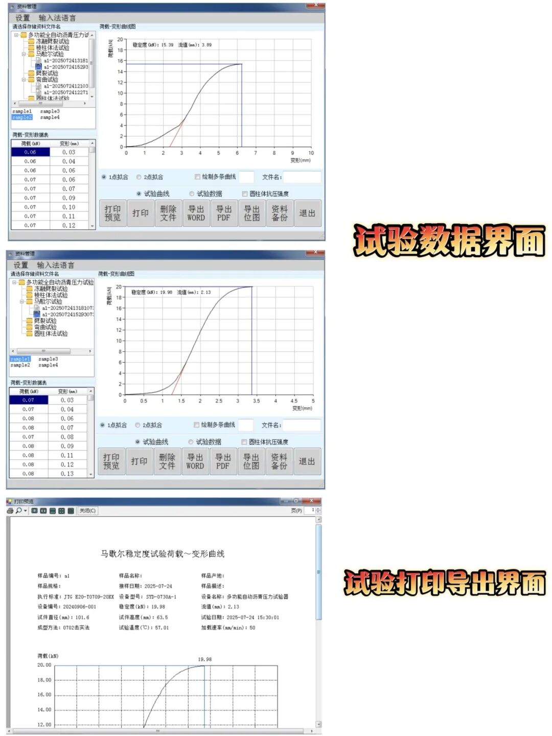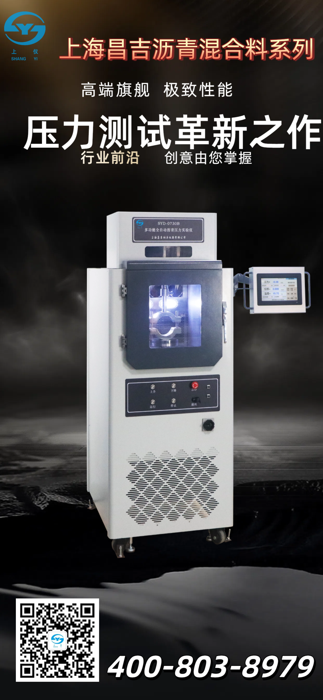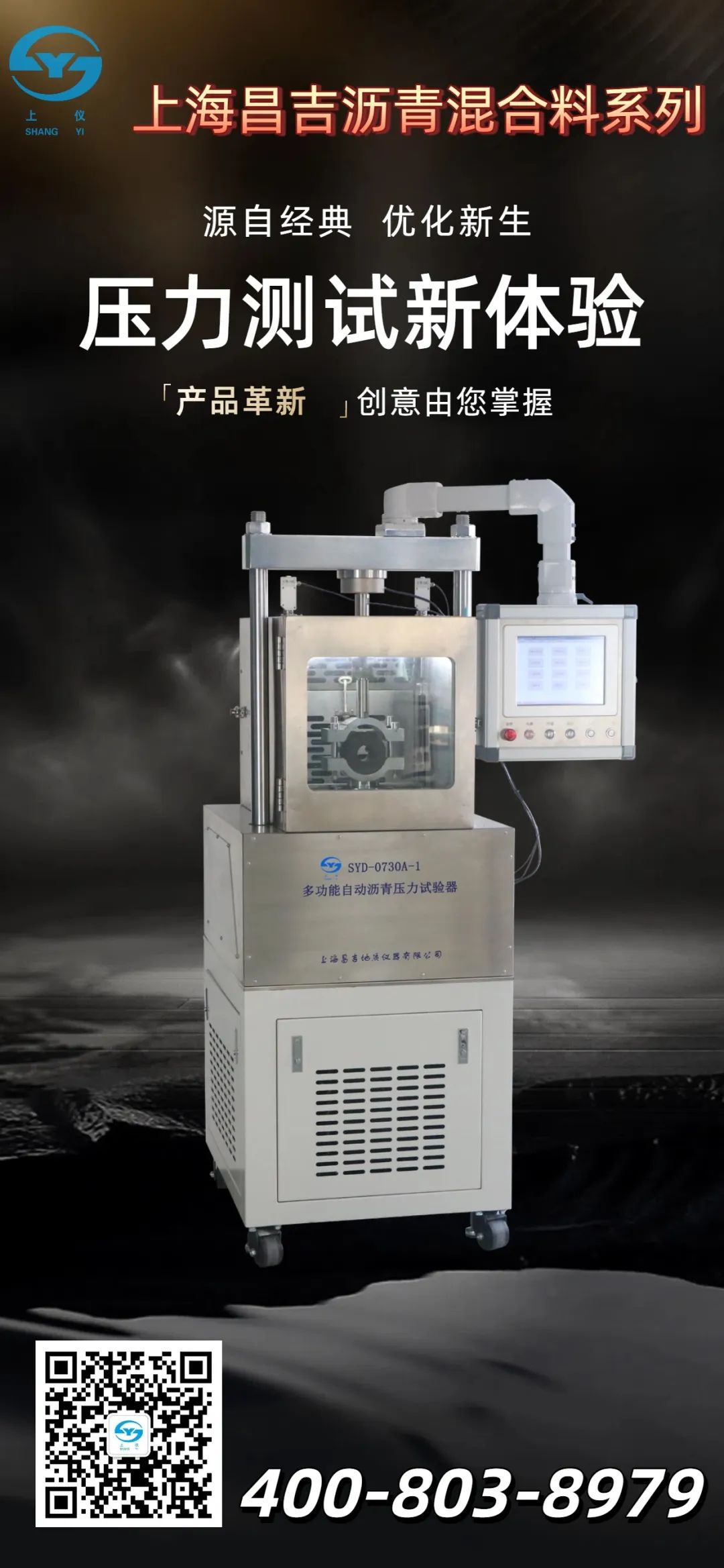 实验简介 多功能全自动沥青压力试验机是道路工程领域的关键设备,通过模拟沥青混合料实际受力场景,全面评估其稳定性、耐久性及抗裂性等核心性能。该设备不仅为沥青路面质量控制与寿命保障提供科学支撑,更为施工与养护决策奠定数据基础。 检测意义 该设备严格依据行业标准《JTG 3410公路工程沥青及沥青混合料试验规程》设计制造,是沥青混合料马歇尔稳定度试验、单轴压缩试验(圆柱/棱柱体)、弯曲试验、劈裂试验、冻融劈裂试验等的专业设备。其核心价值体现于: 升级特点 SYD-0730A-1在继承老款SYD-0730A性能优势的基础上,实现全面技术升级: