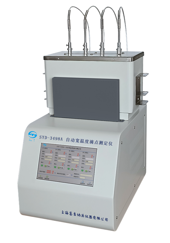 SYD-3498A自动宽温度滴点测定器简介 技术特点 1、嵌入式电脑+触摸屏控制,彩色液晶屏显示,全中文界面,操作直观便捷。 2、一体化设计结构,集加热、控温、全自动检测于一体,功能全面。 3、高精度金属浴控温,配备高精度温度传感器,支持任意设定浴温,具有PID自整定功能,控温精度高。 4、四孔设计+实时监测,四个试验孔,每个孔配备光纤传感器实时监测样品状态。 5、光纤传感器+精准计时,采用耐高温光纤传感器替代人工观察,检测灵敏度高;每个实验孔可独立计时,精准到秒