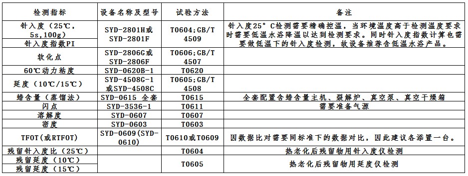 防水沥青材料产品主要针对建筑行业防水涂层或者防水材料加工使用,例如10#建筑防水沥青等,因此检测设备可参考GB/T 494-2010 建筑石油沥青标准中要求的实验设备。